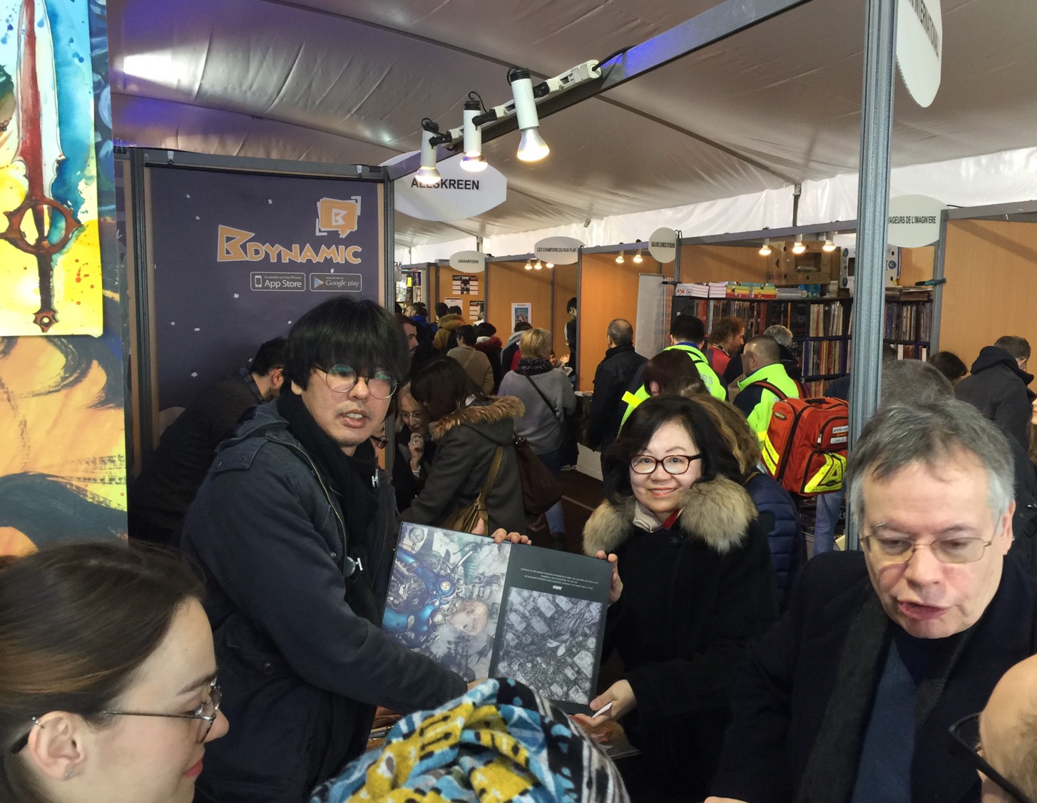 今年有幸從大雪紛飛的巴黎坐了兩個小時的TGA(高鐵)趕上盛會,並與台灣的小尖兵們共享榮耀的時刻。在黃健和策展人的帶領下,今年台灣來了十二位創作者,其中六位漫畫家、 兩位新尖兵、及四位入圍「數位漫畫競賽」的入圍藝術家,可謂陣容龐大。